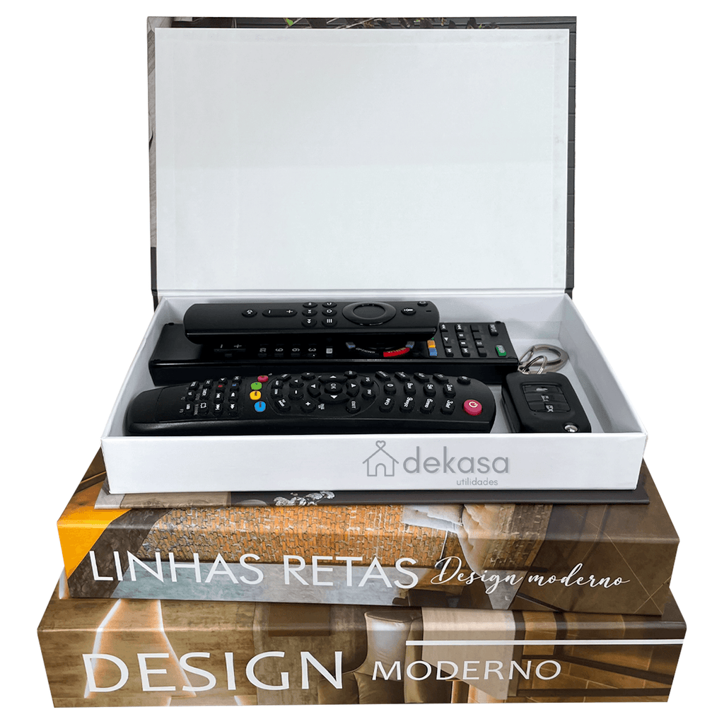 O Livro Decorativo é ótimo para racks, mesas de centro, aparadores, estantes e todo cantinho que quiser. Ao mesmo tempo, organiza e armazena objetos que não precisa estar a vista, como controles remotos, carteiras, papeis, maquiagens, joias etc.