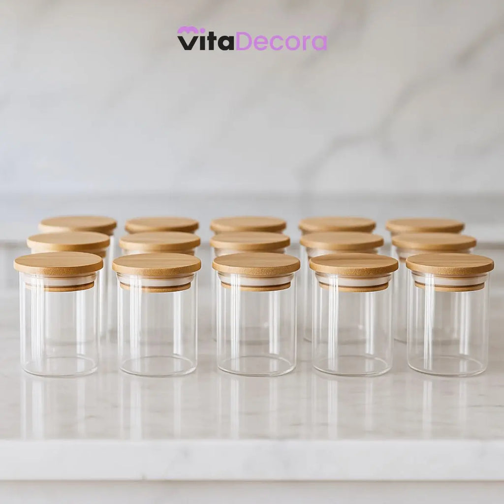 Kit 12 Porta Temperos Vidro & Bambu Hermético Premium 200ml - VitaBela